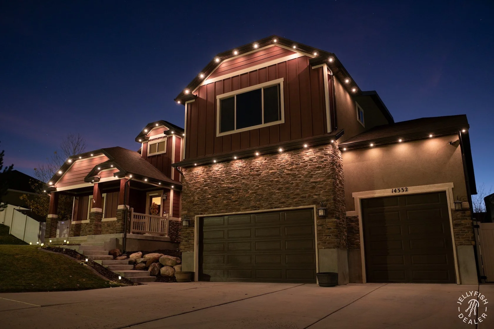 Say goodbye to the hassle of climbing ladders, untangling wires, and paying for seasonal light installations year after year. Oxbow Electric has partnered with Jellyfish Lighting to offer a permanent, premium lighting solution for your home or business. Professionally installed by our licensed electricians, this system provides elegant architectural lighting, bright security lighting, and fully customizable holiday displays all controlled from your smartphone.